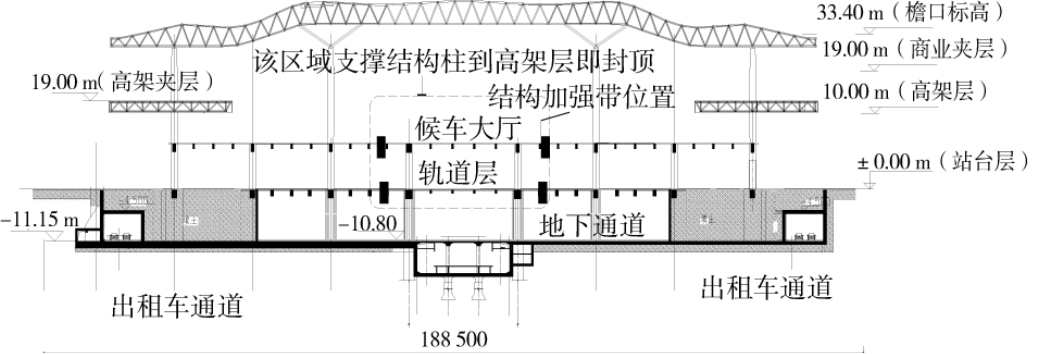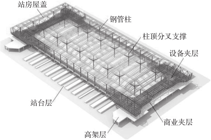 主要指导思想是将高架层进行甩项后施工处理,待轨道层施工完成后即吊装屋面钢结构,之后再行施工室内高架候车层。