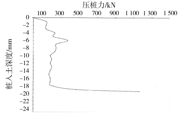 6)压桩以压桩力控制为主,桩长控制为辅。压桩力最大值不得超过基础及上部结构的自有质量,否则很有可能使基础上浮从而破坏房屋结构。