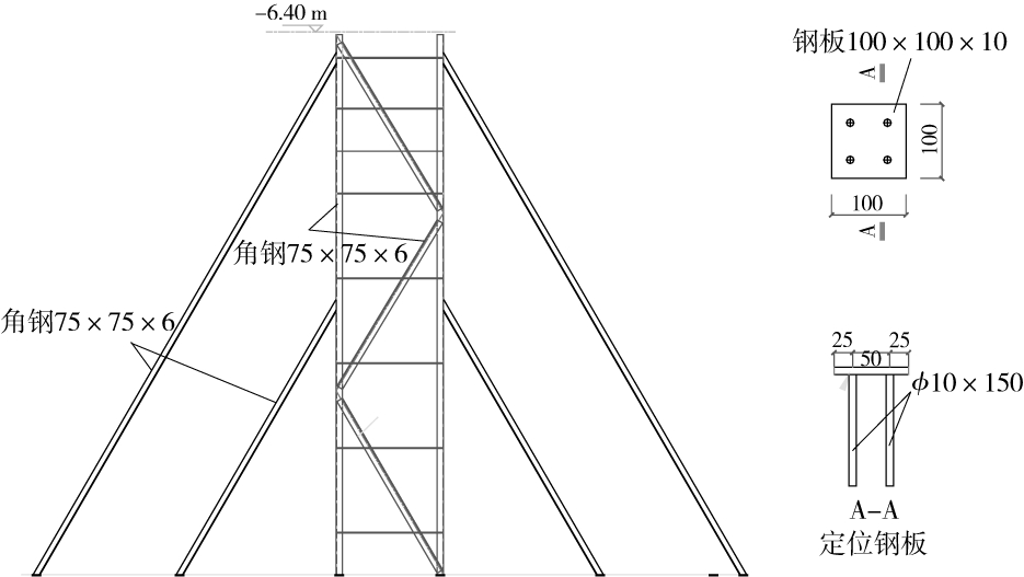 桁架柱按分段单根吊装,待同一分段的2段构件吊装到位后,焊接补缺,使其形成一节桁架柱,再沿纵轴方向每侧至少拉设2根缆风绳保证其侧向稳定。