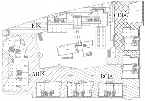 根据施工组织设计及总体部署,将地下室顶板防水施工共分成4个区段进行平行施工。具体分区为AB区、BC区、CD区、E区(图1)。