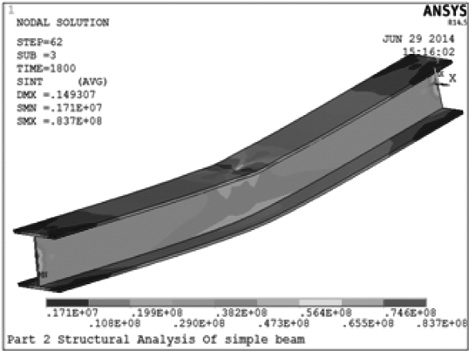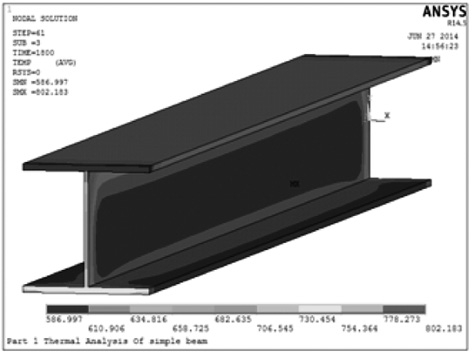 通过基于ANSYS进行的三面受火钢梁的抗火分析,我们发现三面受火钢梁在受火初期,截面各点温差较大,会产生自相平衡的内力,但仍然很快就会失去承载力。而且,在高温下较小的荷载就可以引起钢梁很大的变形。所以外露钢结构施工时对防火涂料的施工要引起足够的重视,以免发生火灾时对结构造成不可逆转的损害。