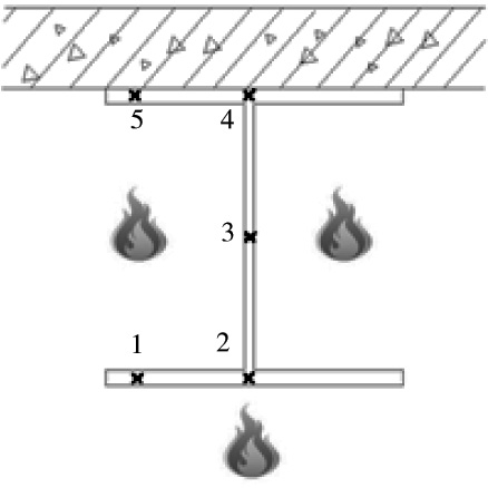 图4 钢梁三面受火温度 测点布置示意