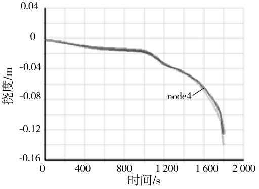 图11 钢梁三面受火端部节点挠度-时间曲线