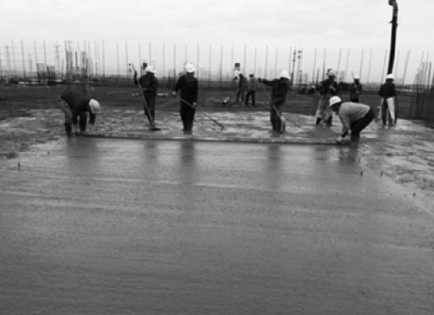 Construction Quality Control over Pouring of Large Area Concrete Floor by Only Once Surface Finishing