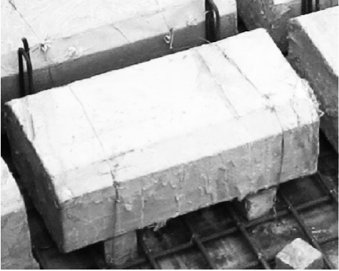 泡沫填充块混凝土底部安装垫块是为了控制块体底部厚度,该项是施工中的重、难点。施工中容易出现的问题是厚度不够,导致泡沫填充块混凝土底部混凝土浇筑完成后出现蜂窝或者孔洞现象。