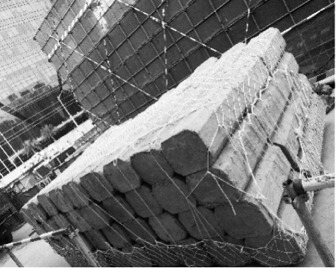 图4 网兜法吊运泡沫填充块混凝土
