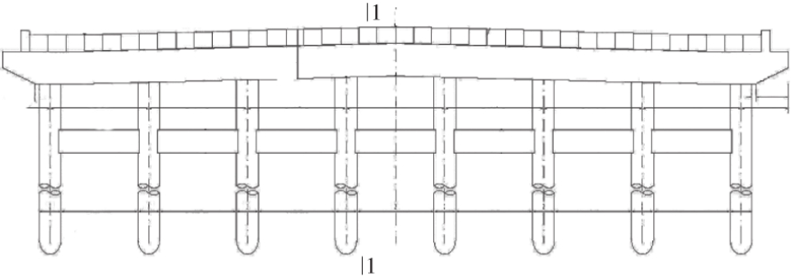 无锡市惠山区华惠路白屈港桥工程位于无锡市华惠路(白屈港—兴长路)K0+535处,为三跨简支板桥梁,每跨跨径20 m,桥面宽41 m,桥跨中心线与道路中心线斜交82°。桥梁下部采用桩柱式桥墩,桥墩盖梁断面为1.40 m×1.40 m,总长43.96 m,混凝土强度等级为C30。立柱灌注桩φ1.20 m,横系梁为0.80 m×1.00 m(图1)。