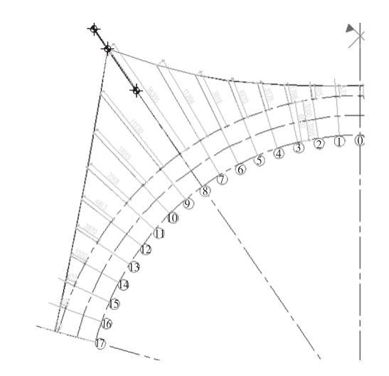 3)分级落架阶段,主桥由于环索张拉而逐步沿径向向主桥内侧偏移,最大径向偏移量为-4 mm;副桥在张拉环索时向副桥内侧偏移,而进行落架时由于环索松弛,会产生向副桥外侧的偏移,最大径向偏移量为-1 mm;