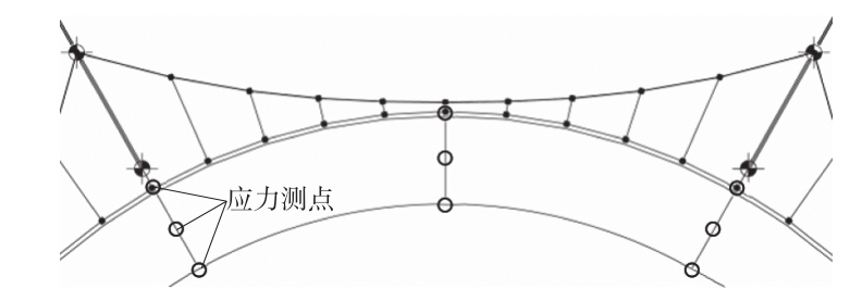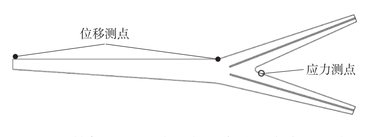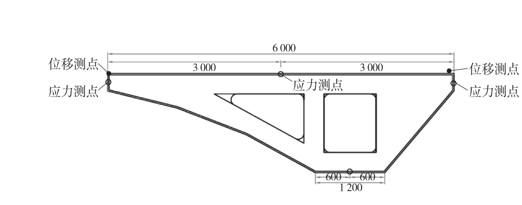 图6 副桥“Y”形臂应力及位移测点布置示意