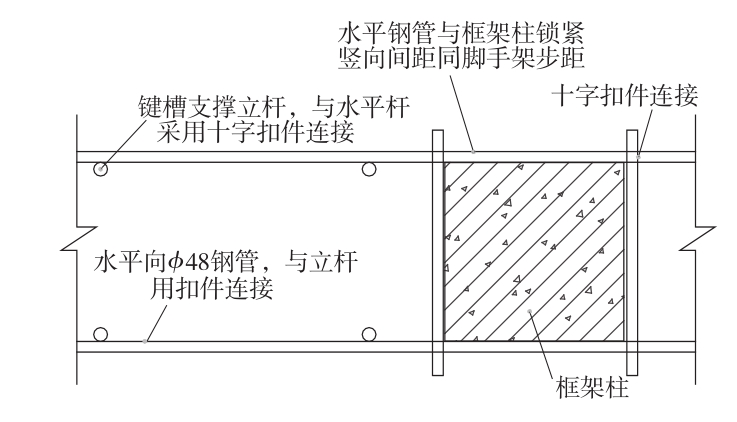 目前市场上普遍存在的碗扣式及钢管扣件式脚手架使用周期普遍较长,壁厚大多严重不足,且搭设过程中随时存在自由段高度过高、纵横杆件连接不牢固等问题,安全隐患突出。采用承插型键槽式脚手架可以从构件原材料及节点特性上规避以上问题[6-7]。